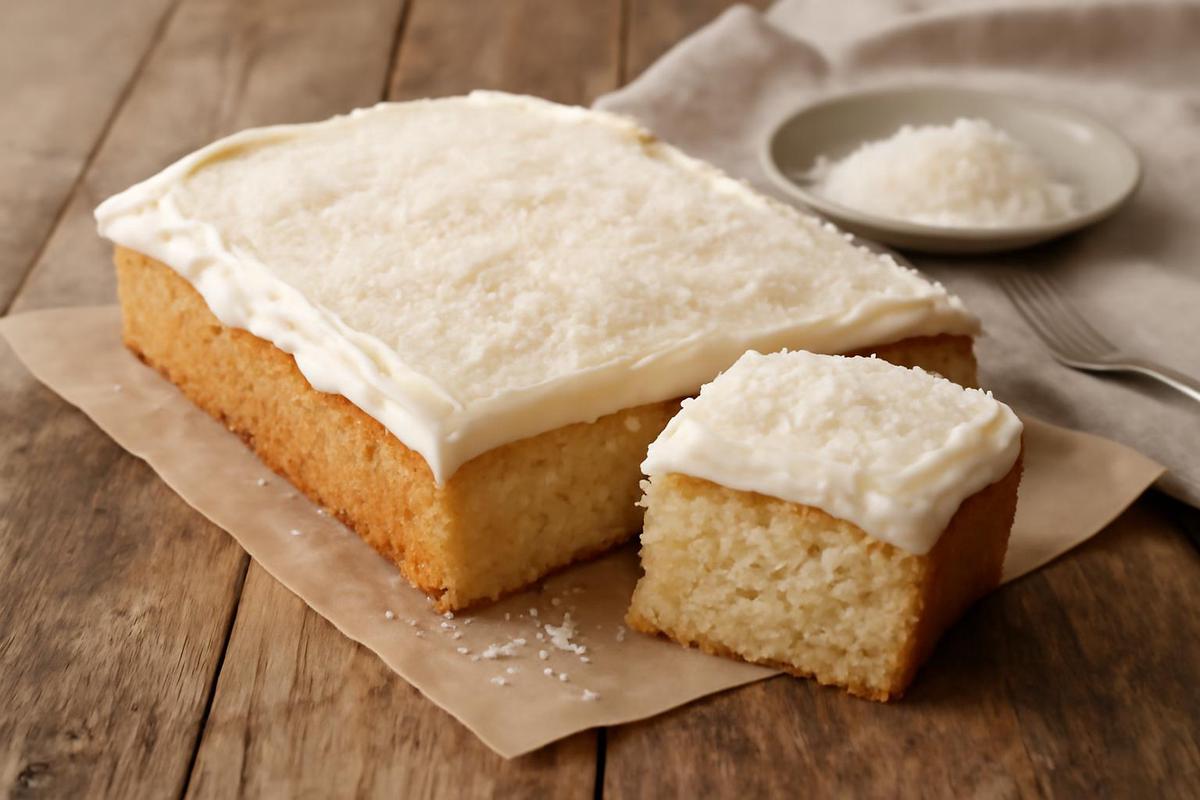 Un postre esponjoso y jugoso que combina coco rallado y leche de coco.