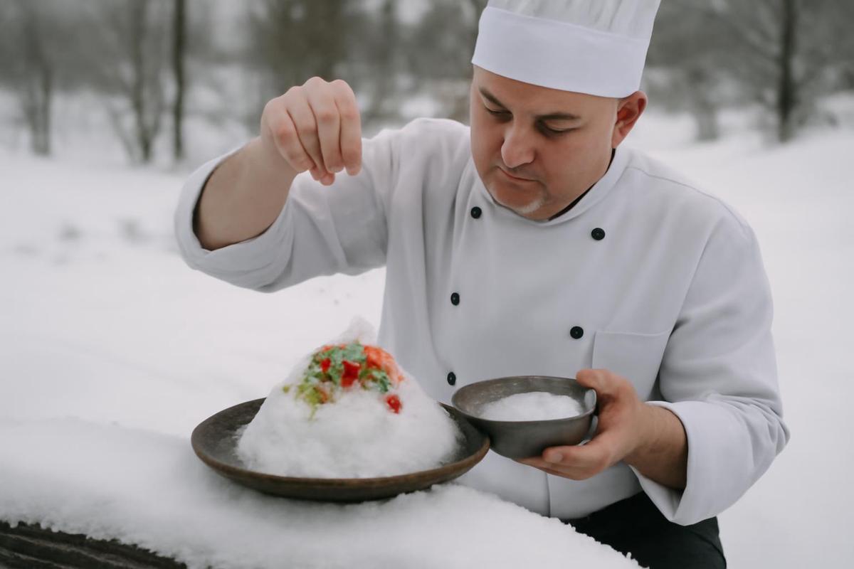 El chef enfatizó que es importante usar nieve muy fresca y limpia para preparar el postre.