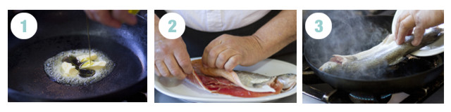 Rellenar la trucha con tres o cuatro rebanadas de jamón El Búho, y una vez cerrada se dora lentamente en un poco de manteca y oliva, apenas cinco minutos por lado. No hace falta agregar sal porque con el calor, el jamón le dejará toda su impronta y sabor artesanal. La acompañamos con verduritas hervidas, cada una en su punto, acompañadas de aceite de oliva extra viren de Traslasierra.