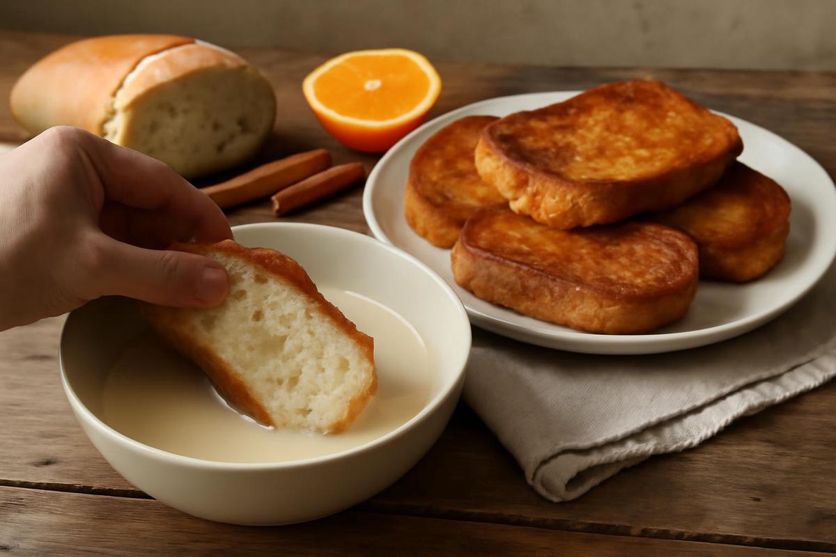 Una vez que la harina se disuelva completamente, se deben pasar las rebanadas de pan previamente remojadas en la leche por esta mezcla y proceder a freírlas. En caso de no contar con leche, también se puede realizar el preparado con agua, ajustando la cantidad de líquido hasta obtener una consistencia ligeramente espesa que sustituya al huevo batido.