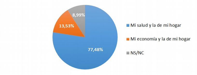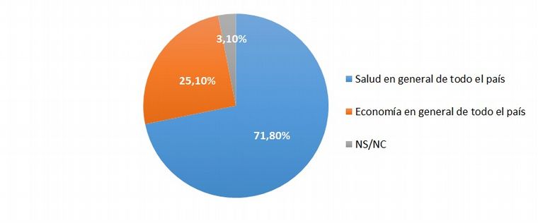 -A la mayoría de los encuestados le preocupa más la salud que la economía. En términos particulares, pensando en la situación personal de cada uno y de sus hogares, esta relación se da en un 77,48% para la salud y un 13,53% para la economía. Pero considerando la generalidad del país, la salud preocupa más en el 71,80% de los casos, y la economía en el 25,10%.