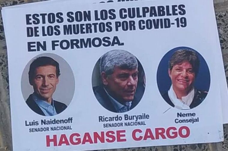 La ciudad de Formosa amaneció con folletos que señalan a la concejal Gabriela Neme y a los legisladores, Luis Naidenoff y Ricardo Buryaile como “culpables por los muertos por Covid”.