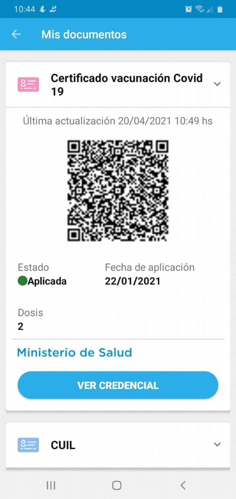 “Me bajé la aplicación Mi Argentina porque ahora el carné de conducir está allí, no le di bolilla porque pensé que era una propaganda y luego me di cuenta que decía que estaba vacunada”, relató a Cadena 3 la vecina de la localidad cordobesa de Villa María.
