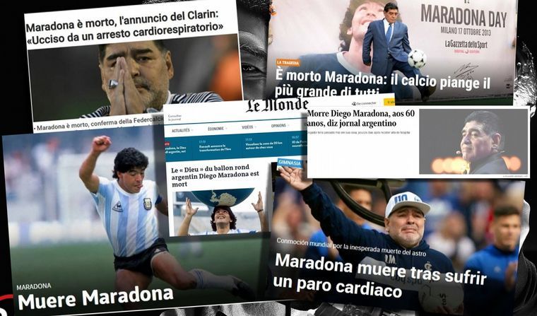 Los portales de diferentes países reflejan la noticia del fallecimiento del astro futbolístico. "El Diez" dejó de existir este miércoles a los 60 años. Mirá.