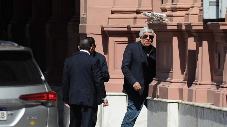 Moyano asistió a Balcarce 50 por un encuentro que tenía pautado con el ministro del Interior, Eduardo "Wado" de Pedro, aunque también se entrevistó con el Presidente.