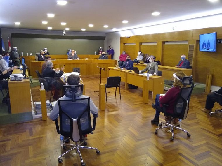 Las ubicaciones en la sala de audiencia se dispusieron en base a las normas de distanciamiento social establecidas por el Centro de Operaciones de Emergencias (COE) de la Provincia de Córdoba.