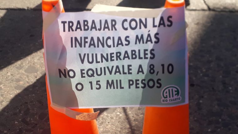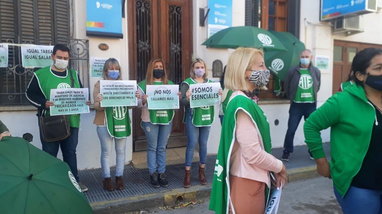Profesionales pertenecientes a la Secretaría de Niñez Adolescencia y Familia Río Cuarto se manifestaron este miércoles reclamando por aumentos salariales y el pase a planta permanente.