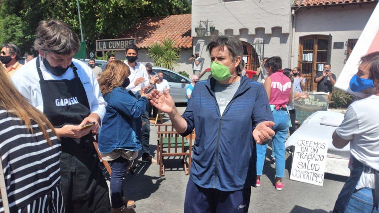 En tanto, en La Falda, también comerciantes y dueños de restaurantes protestaron por esta misma medida.