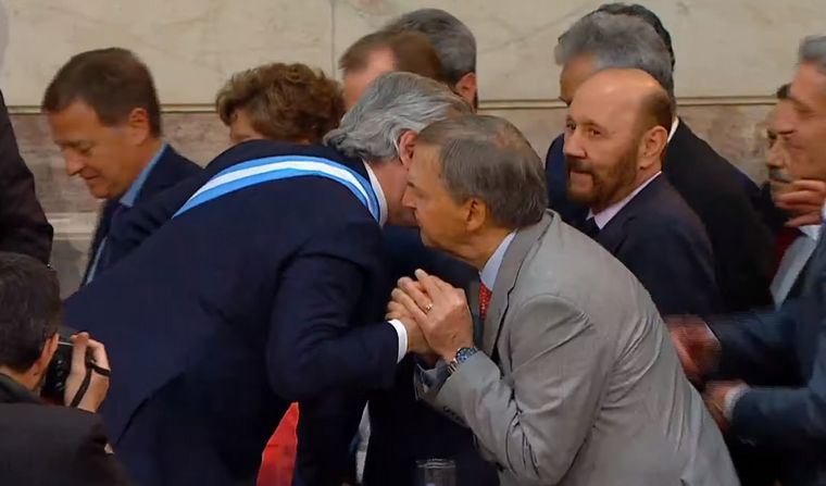 “Lo único que quiero reiterar es mi disposición para trabajar codo a codo junto al presidente Fernández y su equipo para que Argentina supere la crisis, reducir la pobreza y dejar atrás la grieta”, indicó el mandatario provincial a la prensa tras el acto de traspaso de mando en Buenos Aires.