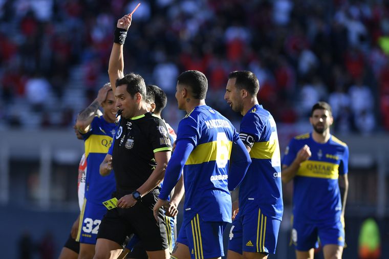 El defensor de Boca recibió la tarjeta roja por dos amarillas casi sucesivas en menos de dos minutos. La decisión del árbitro Rapallini generó una nueva polémica en el superclásico. Mirá.