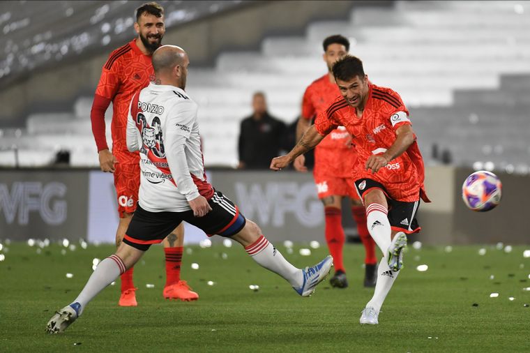 Por ejemplo, Enzo Pérez volvió a ponerse el buzo de arquero (además marcó un gol y el propio Ponzio le atajó un penal), hubo cambios por doquier y cada uno tuvo su espacio, desde el "Loco" Sebastián Abreu, que anotó su infaltable gol de penal picando la pelota, hasta otro señalado por "Leo" y uno de Enzo Francescoli que levantó a la multitud tras una gran apilada personal.