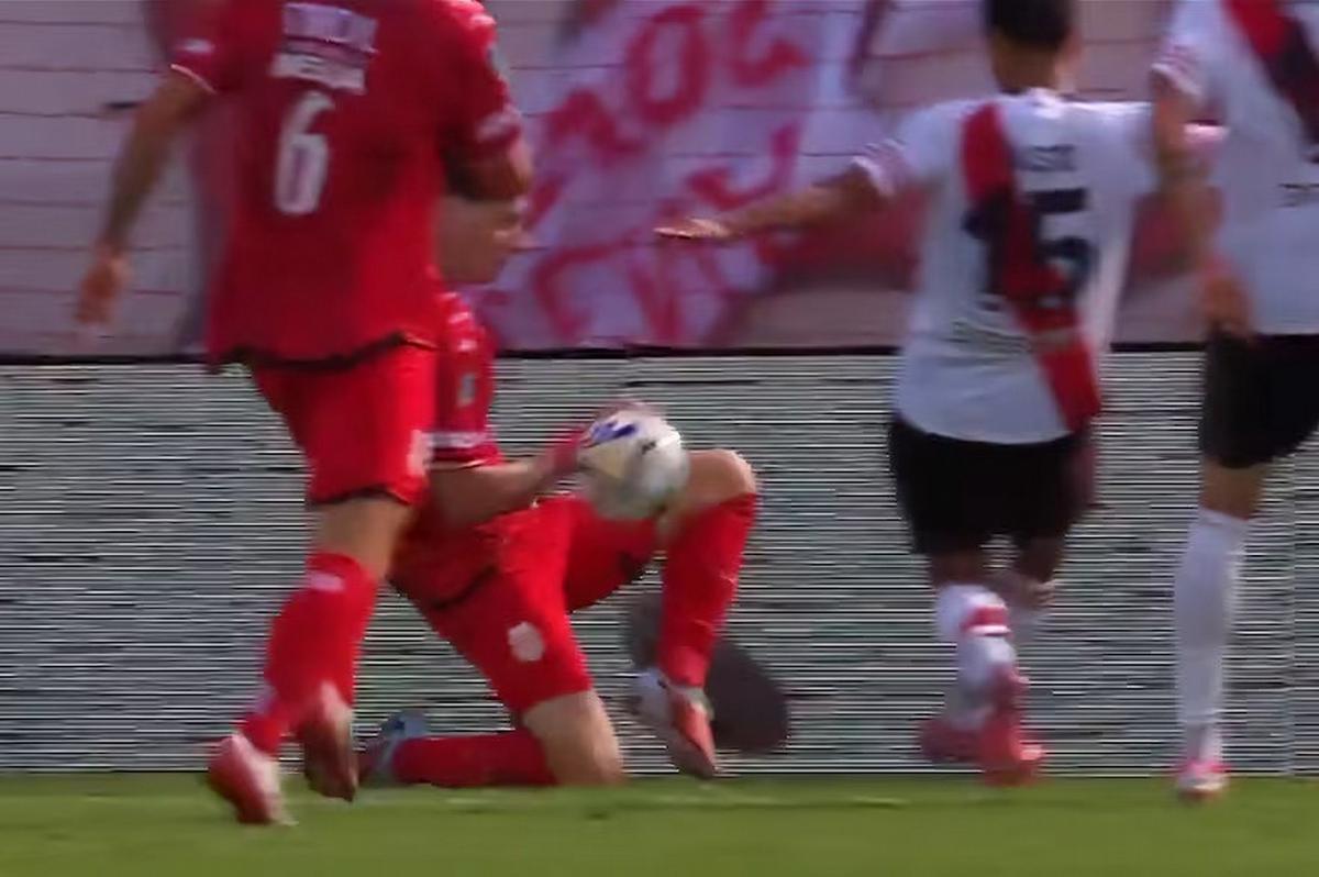 Los jugadores y el cuerpo técnico de River reclamaron penal de inmediato, pero el árbitro Nicolás Ramírez decidió no sancionarlo, argumentando que la pelota había pegado en el pecho del defensor. En esa decisión ni el VAR intervino para revisar la acción.