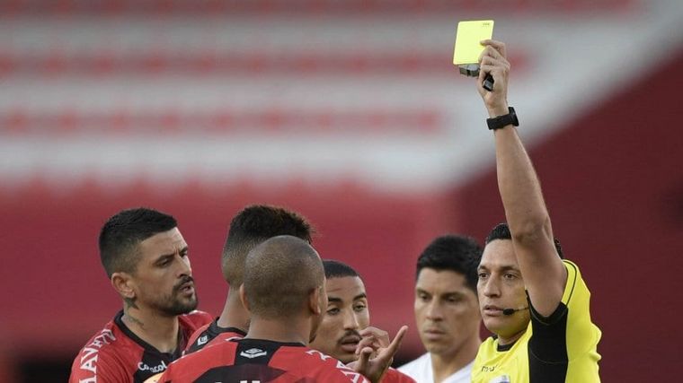 El árbitro Jesús Valenzuela no dudó en mostrarle la tarjeta. A pesar de las protestas de los jugadores de Paranaense, la sanción disciplinaria fue correcta.