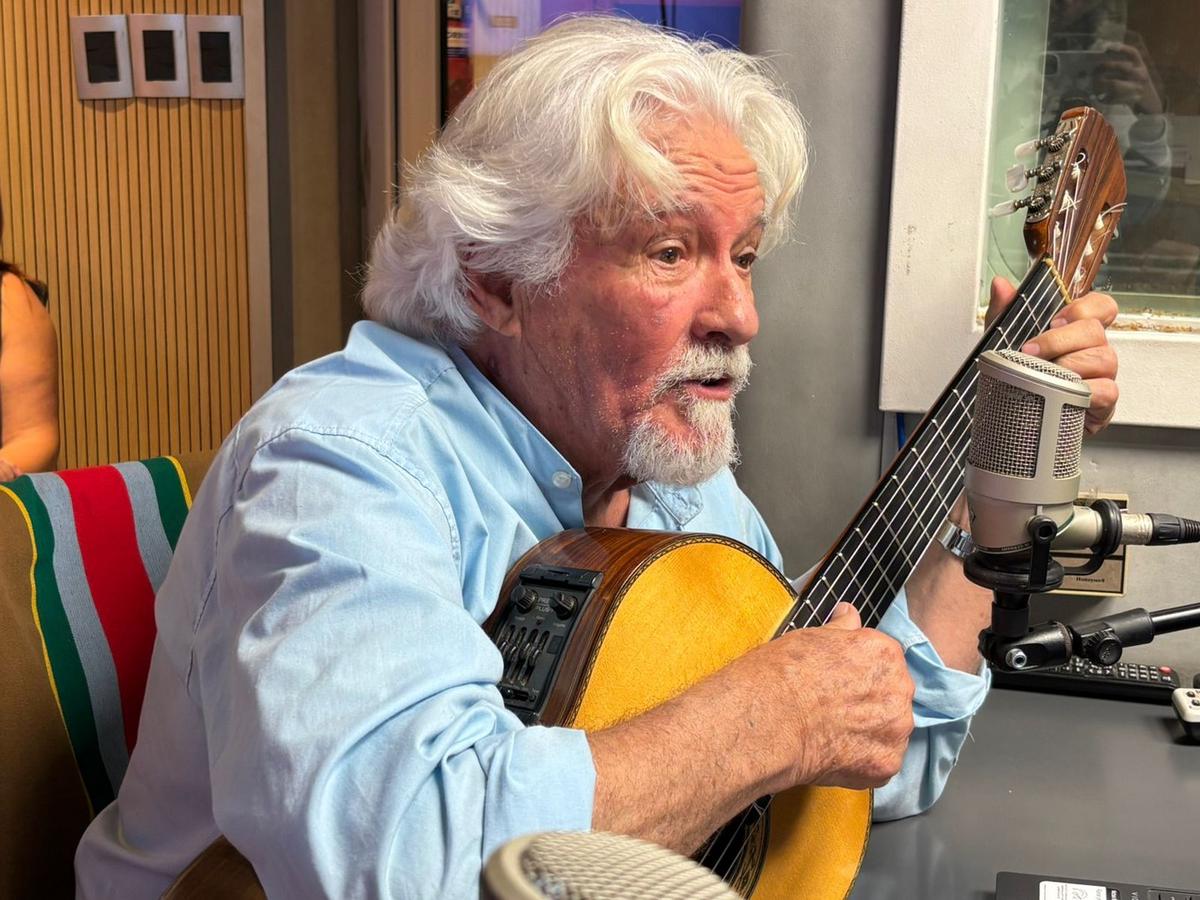 El cantautor viene de presentarse en San Marcos Sierras, está volviendo a Santa Fe, pero antes pasó por Cadena 3.