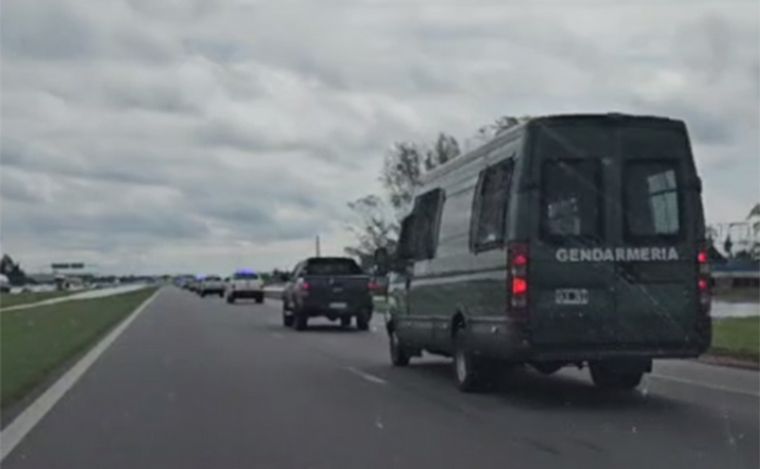 En un video captado en las últimas horas se advierten varios vehículos de Gendarmería en dirección a uno de los accesos a la ciudad.