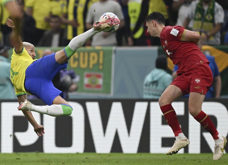El atacante del Tottenham Hotspur Richarlison marcó los dos goles en la segunda mitad del partido disputado en Lusail, el primero de rebote en el área chica y el segundo con un espectacular giro de tijera, convertido hasta el momento en el mejor tanto de la competencia.