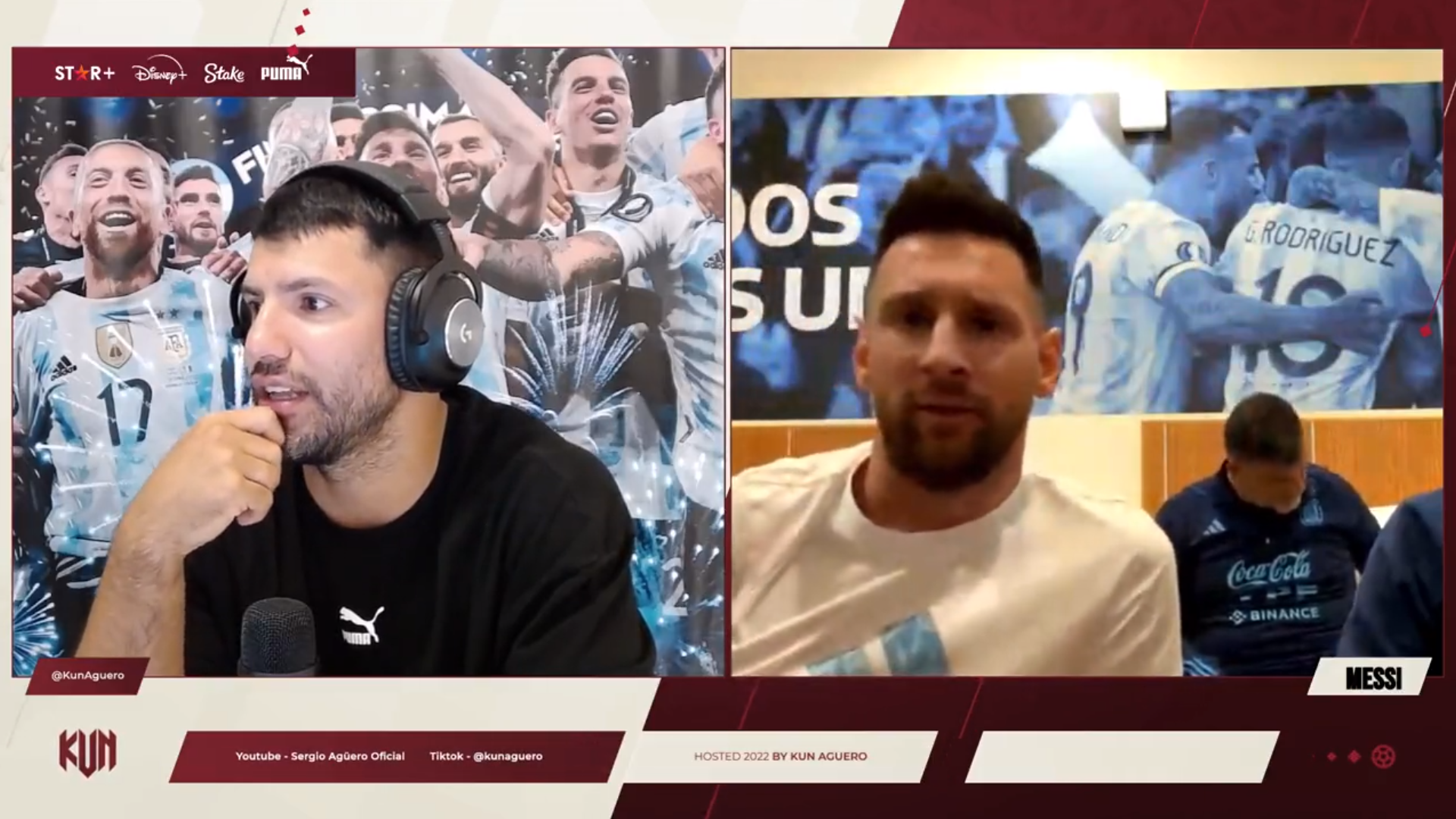 Messi, sin dudar, respondió: "En nuestra pieza estamos", haciendo alusión a que esa habitación aún le pertenecía al "Kun", como cuando compartían concentración a lo largo de tantos años juntos en el representativo nacional.
