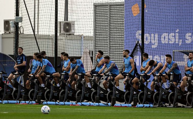 Luego de vencer a Países Bajos en la definición por penales, el cuerpo técnico de Lionel Scaloni programó la práctica para las 9.30 de Argentina en el predio de la Universidad de Qatar y los primeros quince minutos fueron abiertos a la prensa.