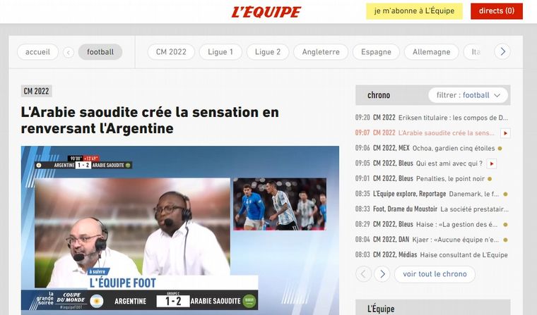 Los medios del mundo en sus versiones digitales hablan del "batacazo" sufrido por Argentina ante Arabia Saudita, con el que cayó 1-2 en el debut mundialista de Qatar, y remarcan la falta de reacción del conjunto de Lionel Messi.