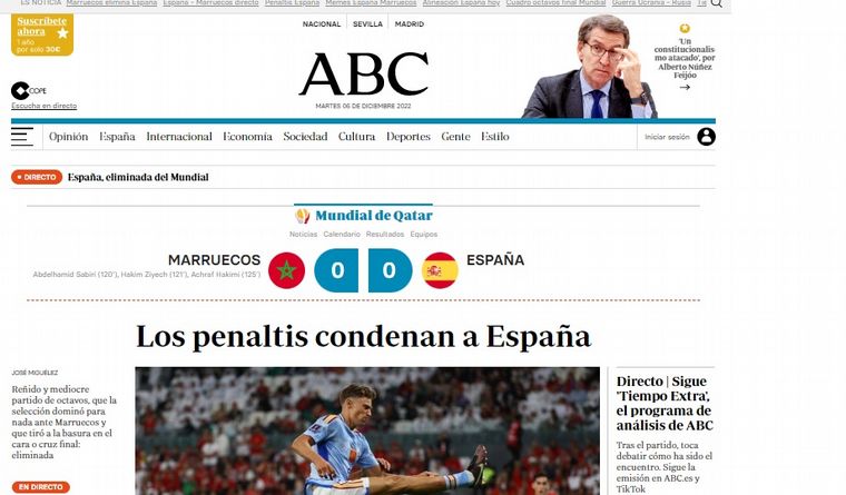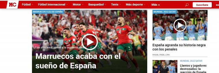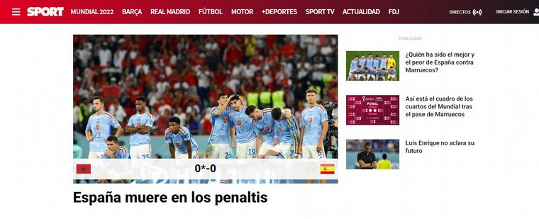 "España dice adiós en los penales y Marruecos hace historia", calificó el diario catalán Mundo Deportivo.