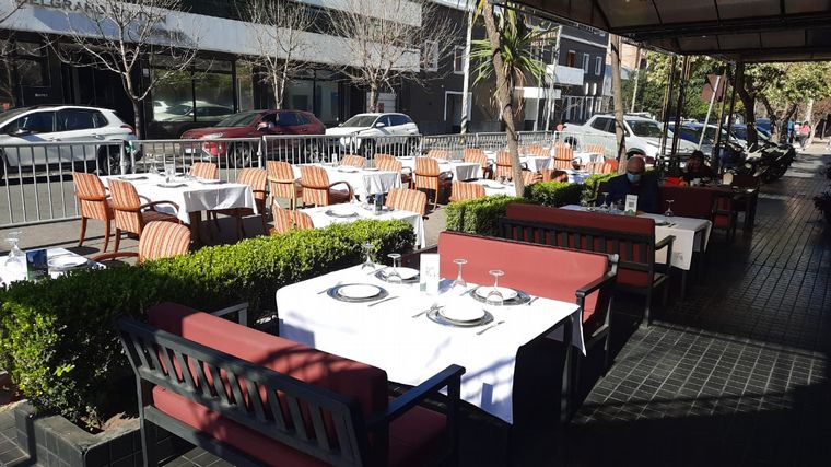 Fiel a su lema “al mal clima, buena mesa”, la tradicional marisquería de barrio Alta Córdoba sacó sus mesas a la calle y vereda, para seguir ofreciendo todos los platos de su carta.