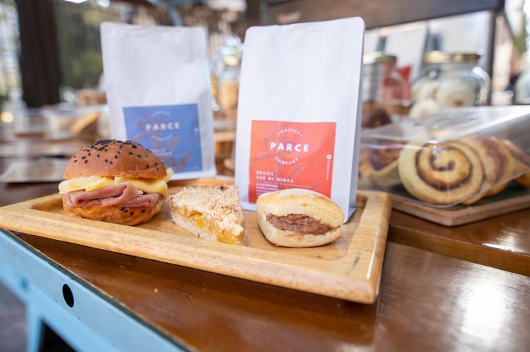 El café que sirven Pablo y Leandro es de especialidad. Para acompañarlo hay pequeños complementos dulces y salados: alfajores, scones, sandwiches, cookies. La idea es que se puedan comer al paso.
