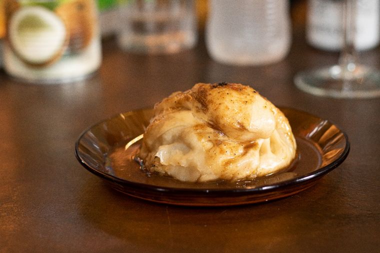 Llega el segundo plato: sio pao, un pan suave cocinado al vapor, relleno de carne y bañado con salsa de szechuan.