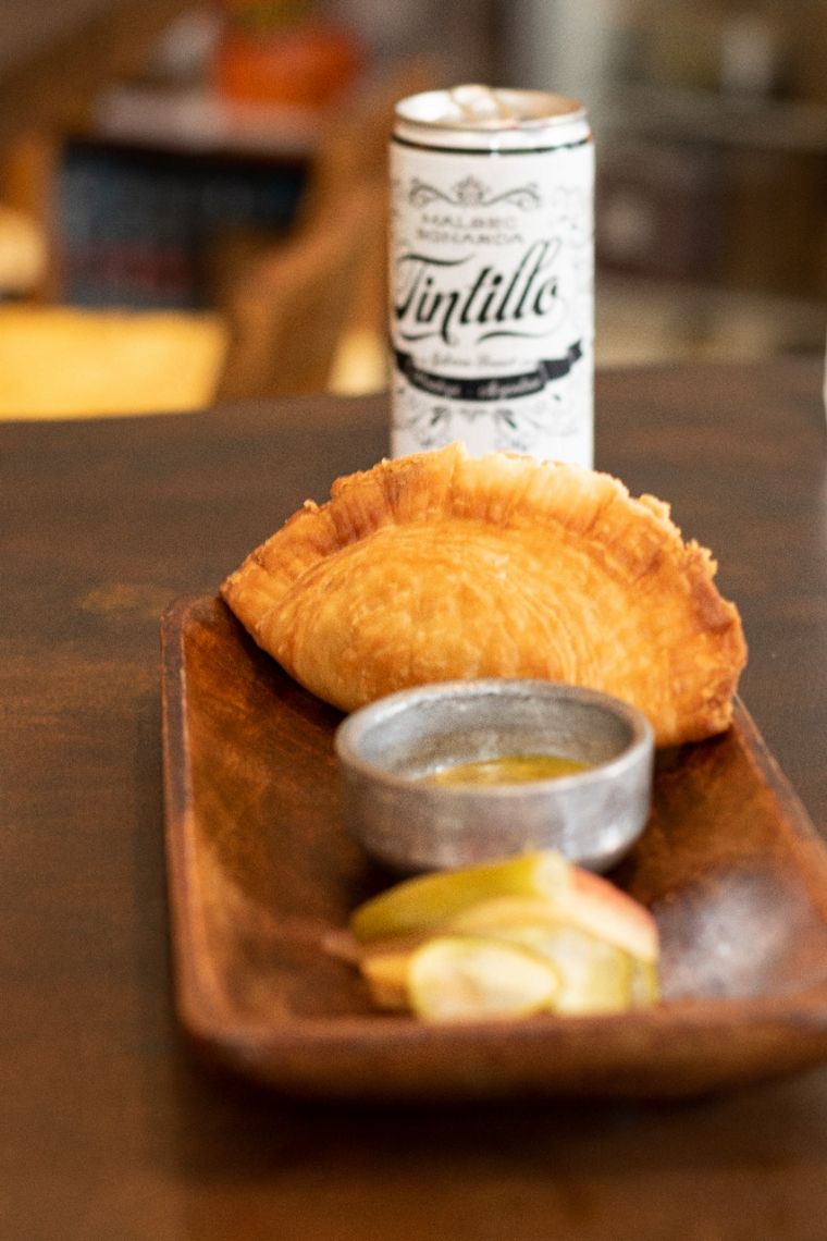 Para empezar, empanada de Kaliskis, una versión filipina de masa de hojaldre rellena con curry de garbanzos con pickles y sriracha ideal para los veganos.