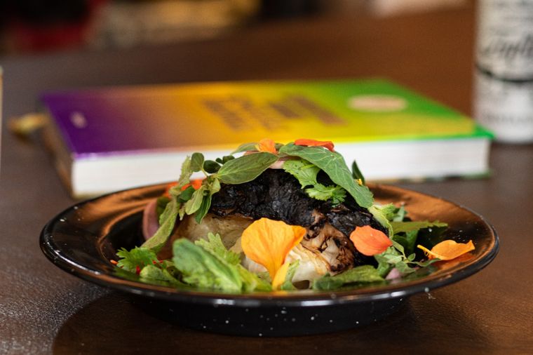 Y cuando creíamos que nada podía sorprendernos más, llega la estocada final: un repollo quemado en las brasas, acompañado con salsa de maní y sésamo, hierbas frescas y puntos de picante de la casa, otra opción increíble para los veganos.