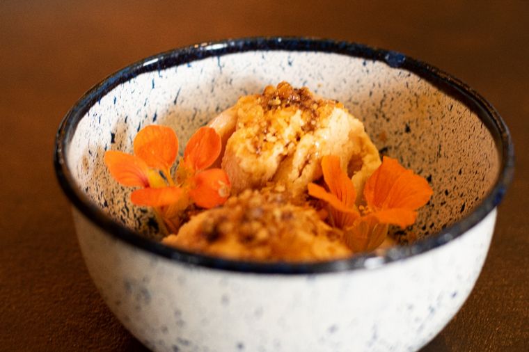 No faltó el toque de dulzura para cerrar esta increíble experiencia: helado de boniato, almíbar de miso y crocante de maní.