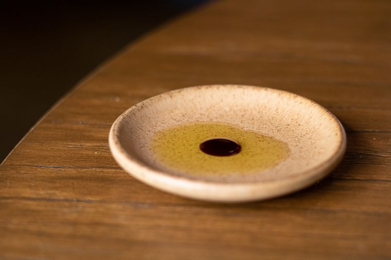 La propuesta arranca con una degustación de pan de masa madre de tres años que se caracteriza por su costra, su miga aireada y una particular acidez.
