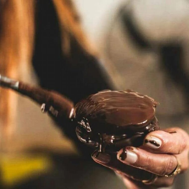 Por otro lado, el horno sigue siendo el original: una bóveda de barro de 113 años que la familia ha mantenido y con el que hornea actualmente. Para el armado, "se rellena a cuchillo uno por uno con los distintos gustos: higo, membrillo, durazno, dulce de leche y también los de chocolate, para luego bañarlos con un pincel de cerdas, también uno por uno", detalla Rita.