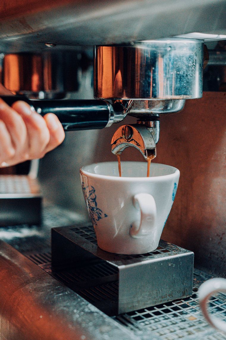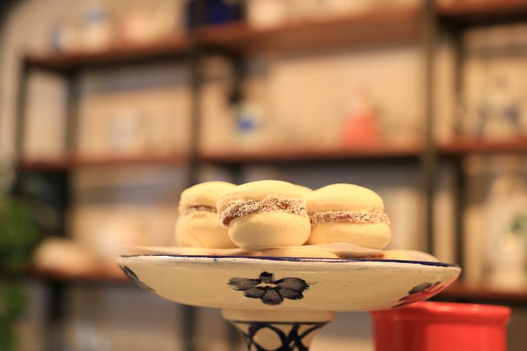 Hay sillas y mesas blancas, hay tacitas de colores y teteras que parecen de colección. Hay una cafetera imponente, un mural con flores de colores y una escalera de metal que lleva a un segundo piso. También hay budines, tortas y cookies.