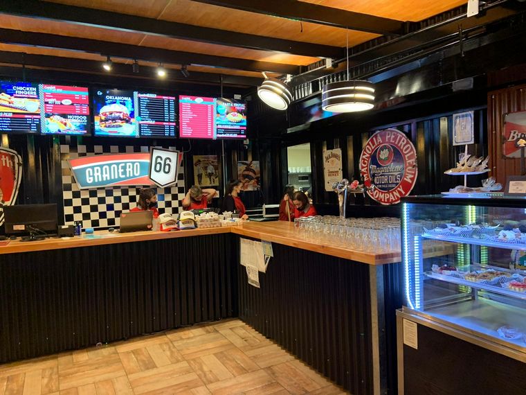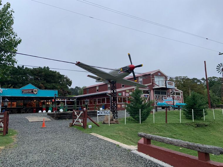 En este restaurante, todo se creó pensando en la mítica Ruta 66. Desde la avioneta que está suspendida en el ingreso al predio, pasando por las butacas, la cartelería, la ambientación en general y hasta el uniforme del personal: todo genera la sensación de estar en suelo norteamericano.