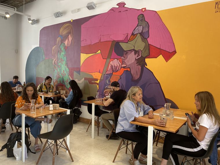 Un imponente mural adorna una de las paredes principales y genera un impacto visual inconfundible. Es inevitable, sus colores vibrantes atraen todas las miradas de quienes ingresan. De acuerdo con lo comentado por Belén, dueña de Le Dureau, "representa la tranquilidad en la vorágine de la ciudad".