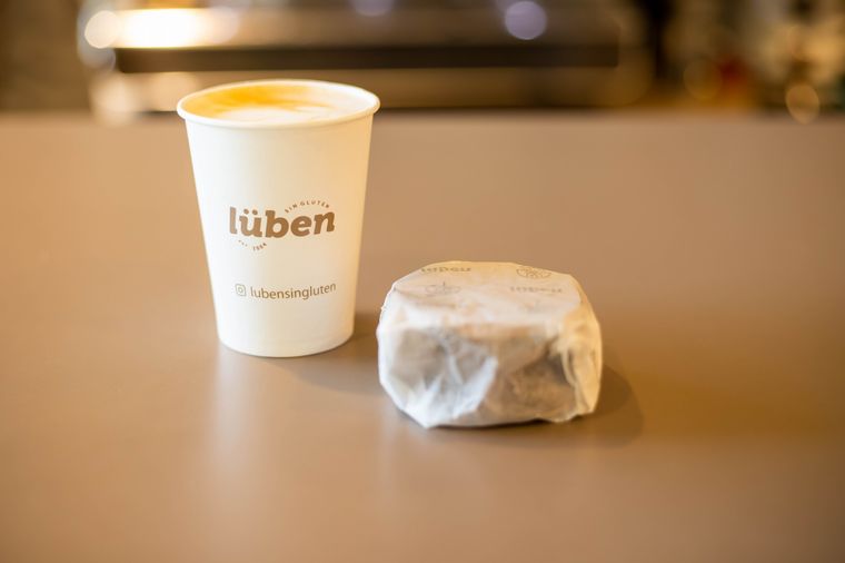 Para acompañar el café, hay deliciosos complementos dulces y salados: rolls de canela, chipá, alfajores, budines y scones. Todo se produce allí mismo y la particularidad es que son todos alimentos sin TACC. Aparte de ser café take away, Lüben es pastelería sin gluten.