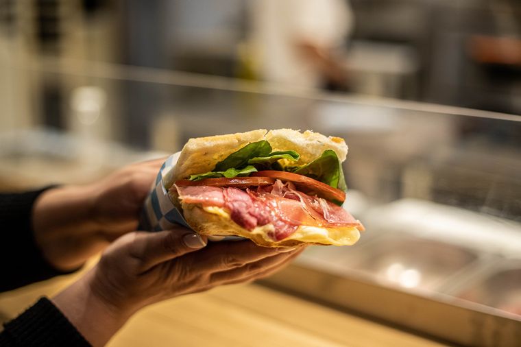 Pero, sin duda, la vedette son los sándwiches de focaccia, rellenos de mortadela, vegetales, jamón crudo o jamón cocido.
