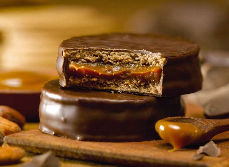 Estos son los más tradicionales: se trata de dos tapas hechas con masa con un toque de cacao, relleno con dulce de leche y bañado en chocolate amargo o semiamargo. También hay bañados en chocolate blanco o merengue.