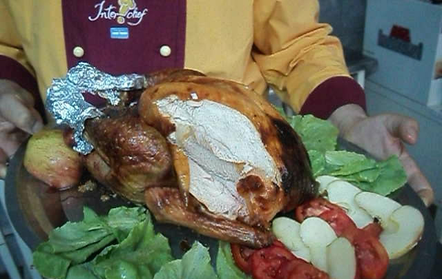 Para servir, acompañar trozos de pavita con trozos de relleno y si lo prefiere un mezclum de hojas verdes ó tomates ó palmitos y salsa golf.