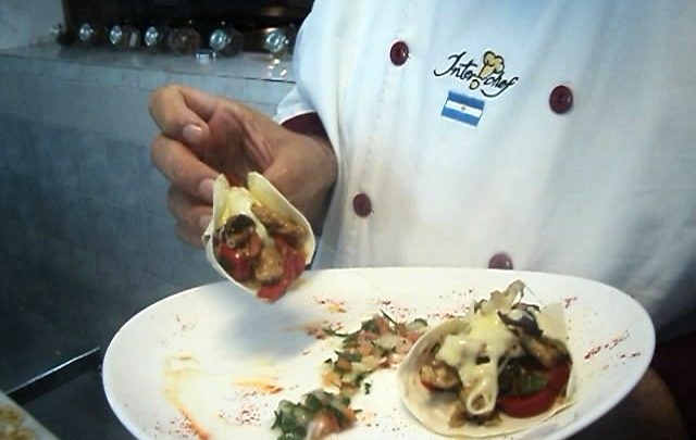 En la plancha colocar las tiras de pechugas de pollo y tiras de pimiento, una vez cocidas agregar el queso mozzarella en tajadas. Integrar bien los elementos, rellenar las tortillas, doblarlas por la mitad y dejar en la plancha hasta derretir el queso sin que se quemen las tortillas.