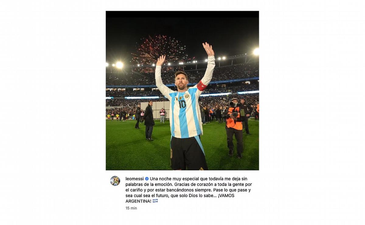 El capitán y figura de la Selección argentina, Lionel Messi, publicó un emotivo posteo en sus redes sociales luego de su último partido oficial en la Argentina con la Selección.