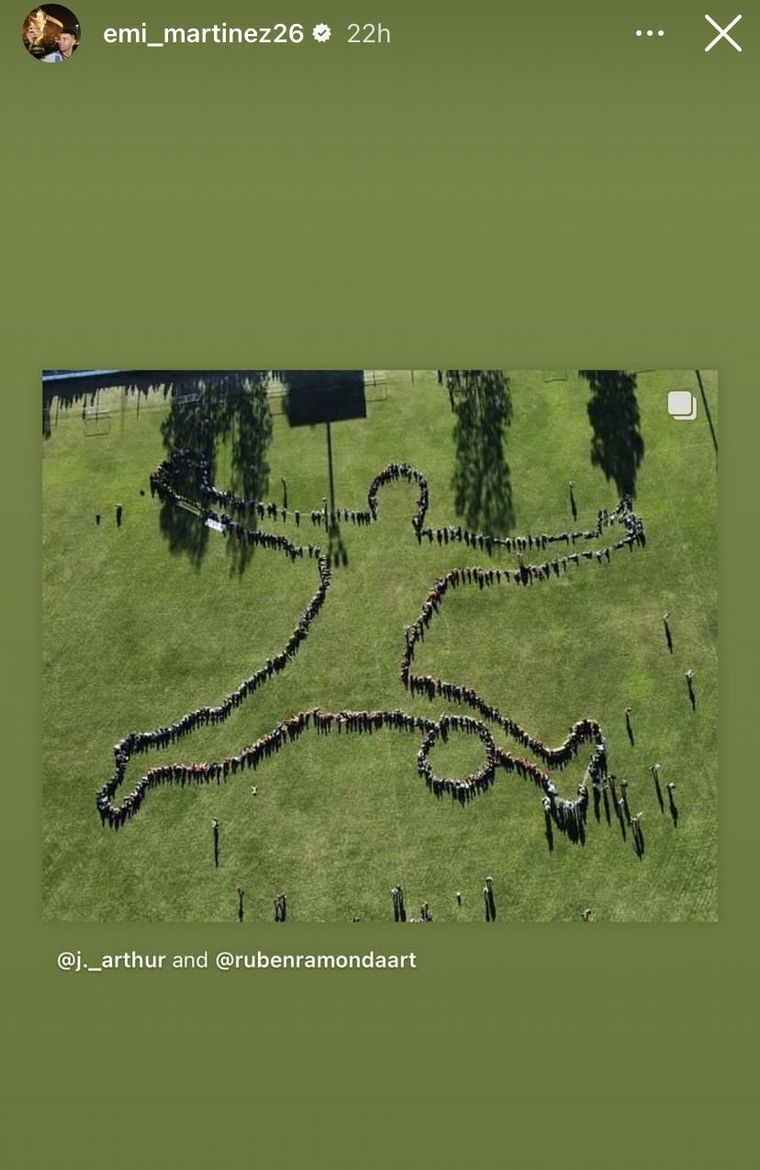 Lo hicieron mediante una fila humana en el césped, logrando así una imagen aérea espectacular.