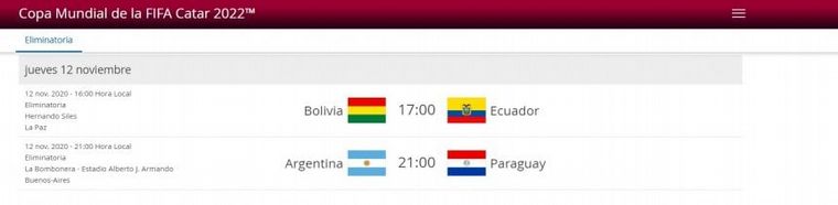 En la programación oficial que figura dentro del apartado de la clasificación de Conmebol para la cita ecuménica, al mediodía argentino figuraba que el duelo entre albicelestes y guaraníes sería a partir de las 21:00 en Santiago del Estero, luego que más temprano (17:00), Bolivia reciba a Ecuador en la altura de La Paz.