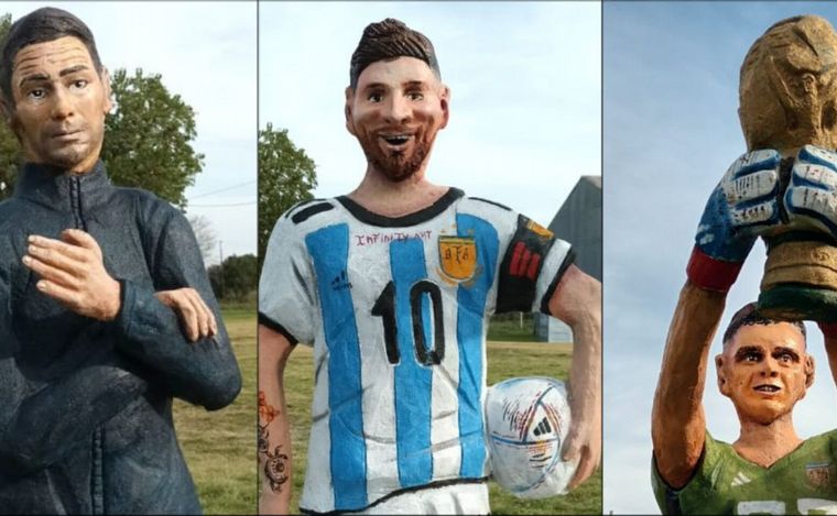La localidad de Gobernador Etchevehere en Entre Ríos homenajeó a los campeones del mundo Lionel Messi, Lionel Scaloni y Emiliano "Dibu" Martínez con tres estatuas que se hicieron virales rápidamente.