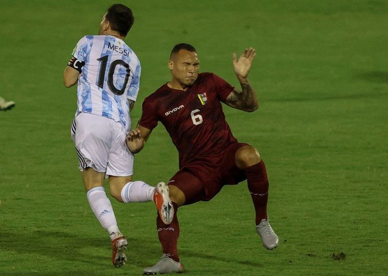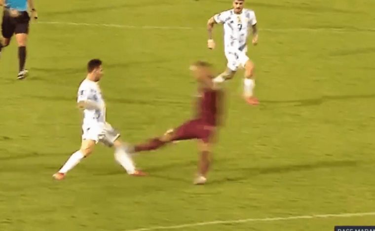 El defensor venezolano le entró de lleno a "La Pulga" con un planchazo, que no lo lesionó de milagro. La jugada fue revisada en el VAR.