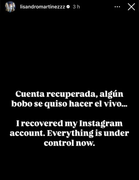 Posteriormente, fue el propio Martínez el que anunció que pudo recuperar su cuenta en la red social mediante una nueva historia.