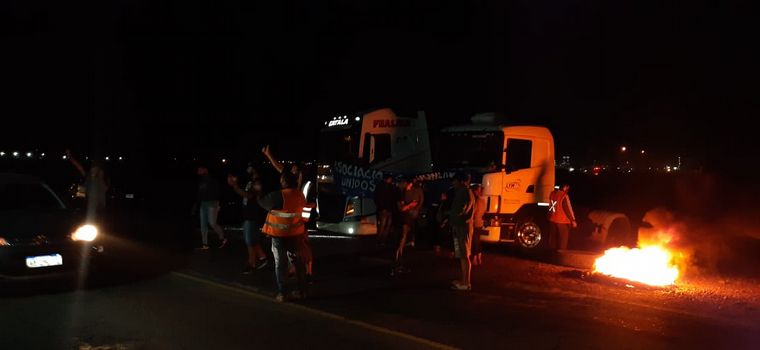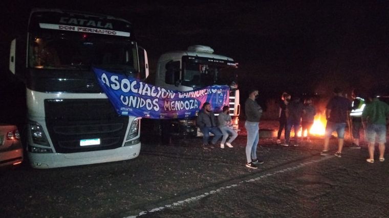 Decenas de camioneros en Mendoza permanecían cortando la ruta internacional 7 que va en dirección hacia Chile, a la altura de Destilería, en la noche de este domingo.