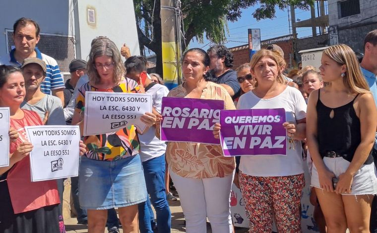 Un conmovedor abrazo solidario tuvo lugar esta mañana de jueves en la Escuela Isabel La Católica, el establecimiento educativo baleado este lunes en Ayolas y Grandoli de la ciudad de Rosario.