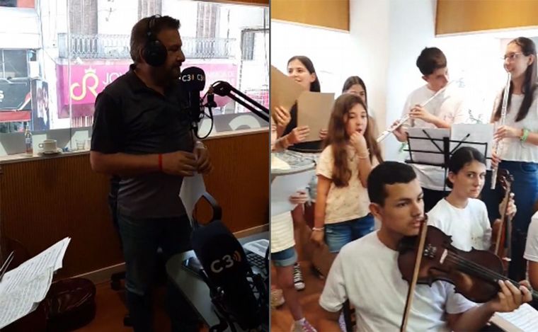 El conjunto instrumental, junto al coro de niños y niñas del Instituto Pro Música, demostró su talento y dedicación en esta presentación especial en los estudios de Cadena 3 Rosario.