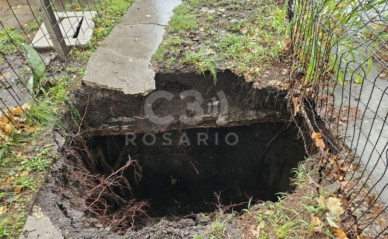 “No lo veíamos, estaba dos metros abajo”, contó uno de los hombres que socorrió al chofer al móvil de Cadena 3 Rosario. Y añadió que son los árboles los que rompen el piso.